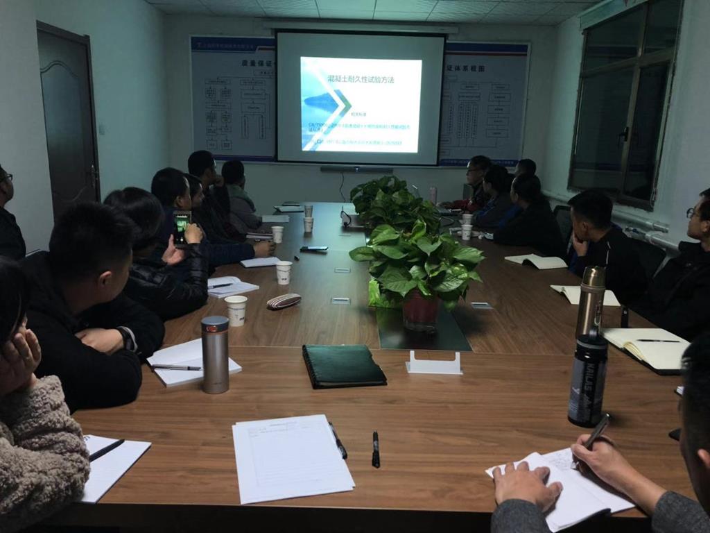 針對(duì)中川機(jī)場(chǎng)T3航站樓連接線建設(shè)項(xiàng)目樁基、墩柱、蓋梁混凝土設(shè)計(jì)特點(diǎn)和凍融及化學(xué)侵蝕的環(huán)境分類,培訓(xùn)分為混凝土耐久性理論學(xué)習(xí)和試驗(yàn)室實(shí)操兩個(gè)部分。理論學(xué)習(xí)階段詳細(xì)介紹了混凝土耐久性設(shè)計(jì)及其控制指標(biāo)的試驗(yàn)檢測(cè)方法,使試驗(yàn)檢測(cè)人員對(duì)混凝土耐久性有了初步認(rèn)識(shí)和了解,并對(duì)混凝土耐久性試驗(yàn)及試驗(yàn)儀器的操作有了初步的掌握。試驗(yàn)室實(shí)操詳細(xì)介紹了堿含量、氯離子快速測(cè)定儀、電通量測(cè)定儀、快速凍融箱等設(shè)備的操作方法和注意要點(diǎn),使試驗(yàn)檢測(cè)人員對(duì)已有知識(shí)進(jìn)行鞏固加深,在今后的試驗(yàn)中做到理論和技術(shù)的雙過(guò)硬。