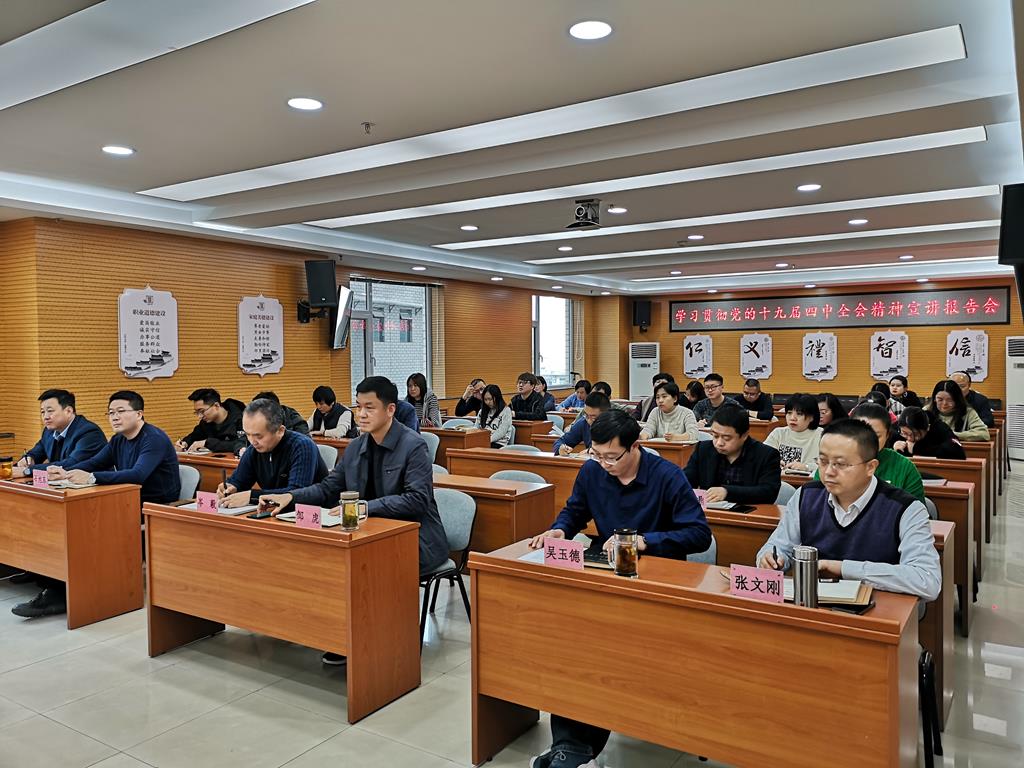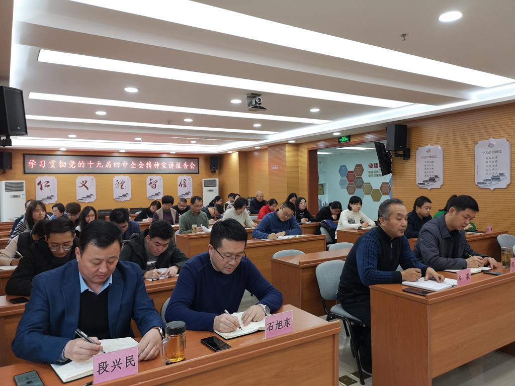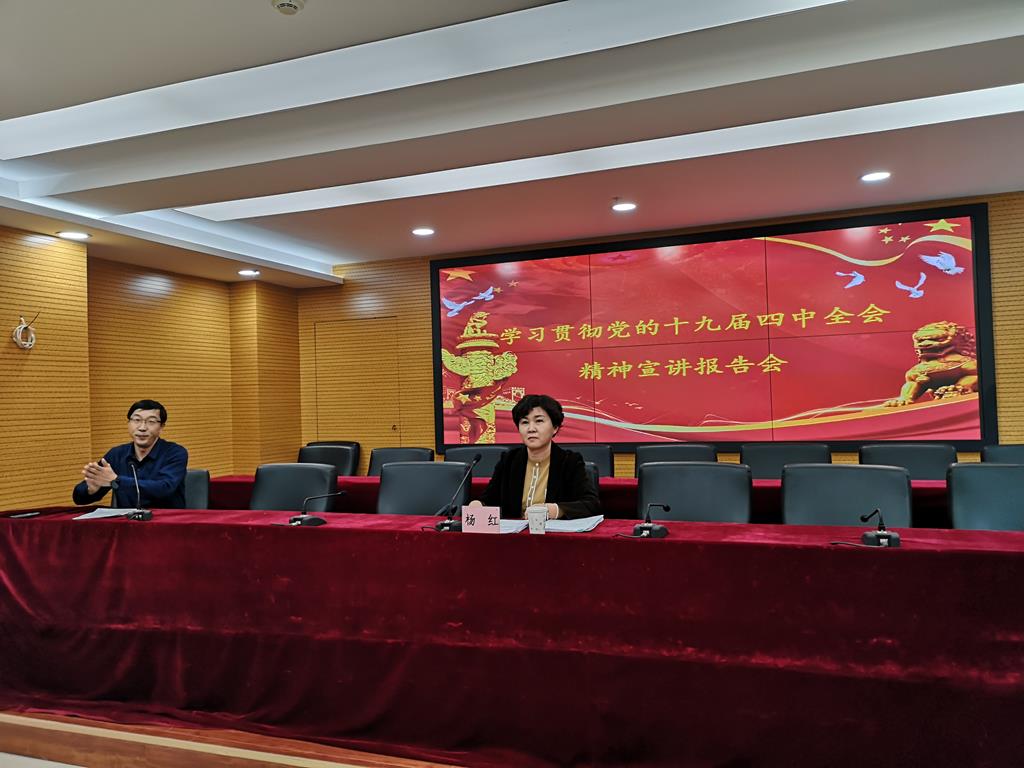 楊紅從“圍繞一個(gè)主線”“突出一條主線”“抓好兩個(gè)落實(shí)”“實(shí)現(xiàn)一個(gè)目標(biāo)”等四個(gè)方面,回顧了黨的十八大以來黨中央治國理政的制度優(yōu)勢、思想升華和實(shí)踐推進(jìn),探討了當(dāng)代世界和中國的重大理論與實(shí)踐問題,分析了國家制度和國家治理體系的顯著優(yōu)勢,分享了全面學(xué)習(xí)貫徹十九屆四中全精神的重大意義。