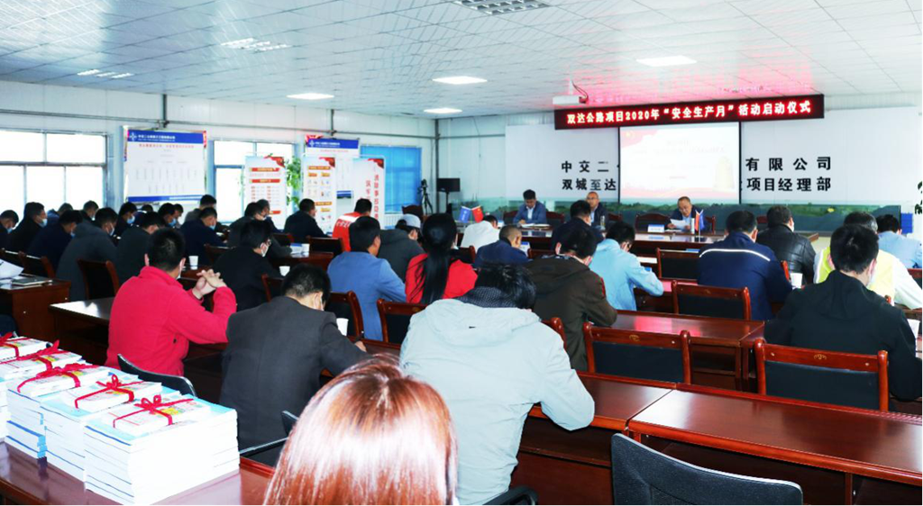 2020年6月4日,雙達項目辦在SDLM標(biāo)項目經(jīng)理部舉辦了2020年“安全生產(chǎn)月”活動啟動儀式,各施工單位項目經(jīng)理、技術(shù)負責(zé)人、安全負責(zé)人,各高級駐地監(jiān)理工程師、安全監(jiān)理工程師,各中心試驗室負責(zé)人等共54人參加啟動儀式。