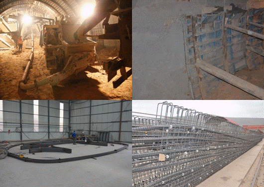 蘭州南繞城項(xiàng)目辦開(kāi)工伊始十分注重新工藝工法在本項(xiàng)目中的推廣應(yīng)用。施工單位通過(guò)自主研發(fā)、引進(jìn)等方式投入使用了多臺(tái)先進(jìn)的機(jī)械設(shè)備,提升了機(jī)械化施工水平。施工單位自主研發(fā)整體自行式二襯臺(tái)車(chē)并投入施工生產(chǎn),就位速度快,解決了傳統(tǒng)二襯施工中人工勞動(dòng)強(qiáng)度大、臺(tái)車(chē)加固繁瑣等問(wèn)題,提高了效率和現(xiàn)場(chǎng)整潔度,同時(shí)也有效避免了混凝土脹模、爆?,F(xiàn)象,確保了洞頂混凝土澆筑密實(shí)、提升了混凝土外觀質(zhì)量,加快隧道安全、高效、節(jié)能、環(huán)保建設(shè);自主研發(fā)自行式移動(dòng)棧橋并投入施工生產(chǎn),自行縱向行走,橫向移動(dòng),靈活方便,跨度較大,能很好兼顧其他作業(yè)面施工,節(jié)約施工時(shí)間,機(jī)械化程度高,生產(chǎn)效率明顯提高,增加了安全性;隧道道面采用滑膜攤鋪機(jī)施工,一次成型,有效保障了道面厚度及平整度,自動(dòng)化振搗系統(tǒng)也有效改善了道面混凝土密實(shí)度;橋梁防撞墻施工采用自行式防撞墻臺(tái)車(chē),吊裝和作業(yè)平臺(tái)一體化,既有效確保了作業(yè)人員的安全又提升了整體施工質(zhì)量;“三背”回填引進(jìn)使用高速液壓夯實(shí)機(jī),全方位無(wú)死角集中夯實(shí),確保壓實(shí)度符合要求;5%灰土路床填筑引進(jìn)全自動(dòng)粉料撒布車(chē)、路拌機(jī)進(jìn)行施工,使混合料拌合更加均勻,自帶調(diào)節(jié)含水量的裝置實(shí)現(xiàn)了最佳含水量的有效控制,大大提高了路基路床填筑質(zhì)量,并且在拌和過(guò)程中無(wú)揚(yáng)塵,實(shí)現(xiàn)了綠色環(huán)保施工;同時(shí)引進(jìn)鋼筋籠滾焊機(jī)、數(shù)控彎曲中心等先進(jìn)設(shè)備,有效確保了鋼材加工質(zhì)量。