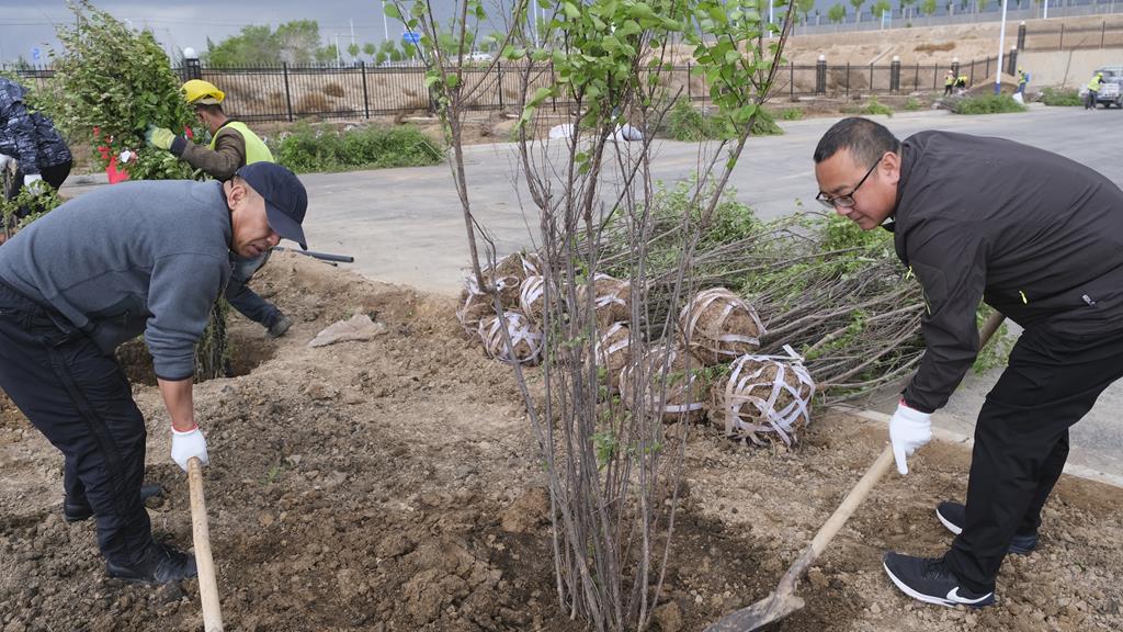 活動現(xiàn)場,項(xiàng)目辦黨員干部用實(shí)際行動踐行初心使命,用責(zé)任和擔(dān)當(dāng)牢固樹立黨員服務(wù)宗旨,增強(qiáng)服務(wù)意識。大家仨倆成組,或運(yùn)苗、或扶苗、或舉鋤、或培土,相互協(xié)作,有條不紊,忙而有序,揮汗造林,將一塊荒地覆蓋上片片綠蔭。
