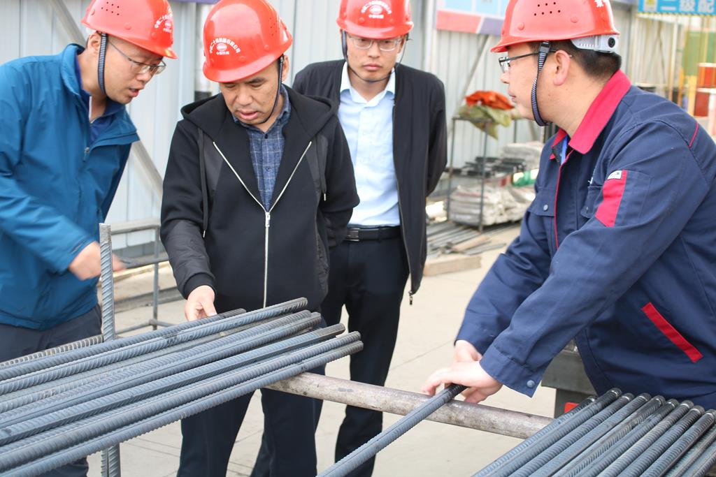現(xiàn)場,一行人員對場地分區(qū)規(guī)劃設(shè)置、臨建及安全防護(hù)標(biāo)準(zhǔn)化、環(huán)保及文明施工情況進(jìn)行了了解,重點(diǎn)對施工工藝精細(xì)化,鋼筋數(shù)控彎箍機(jī)、鋸切機(jī)、鋼筋剝肋滾絲機(jī)等新設(shè)備、新工藝的應(yīng)用情況與參建人員進(jìn)行了互動交流,現(xiàn)場氣氛良好。