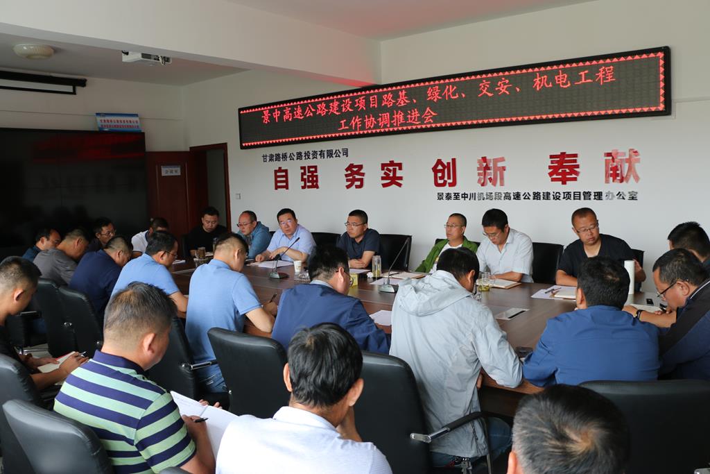 為進一步深化各工程緊密銜接配合,持續(xù)推進景中項目全線高質量建設,2019年7月24日上午,景中項目辦組織召開了路基、綠化、交安、機電工程工作協(xié)調推進會,項目辦各領導、各科室負責人及相關單位主要管理人員參加了此次會議。
